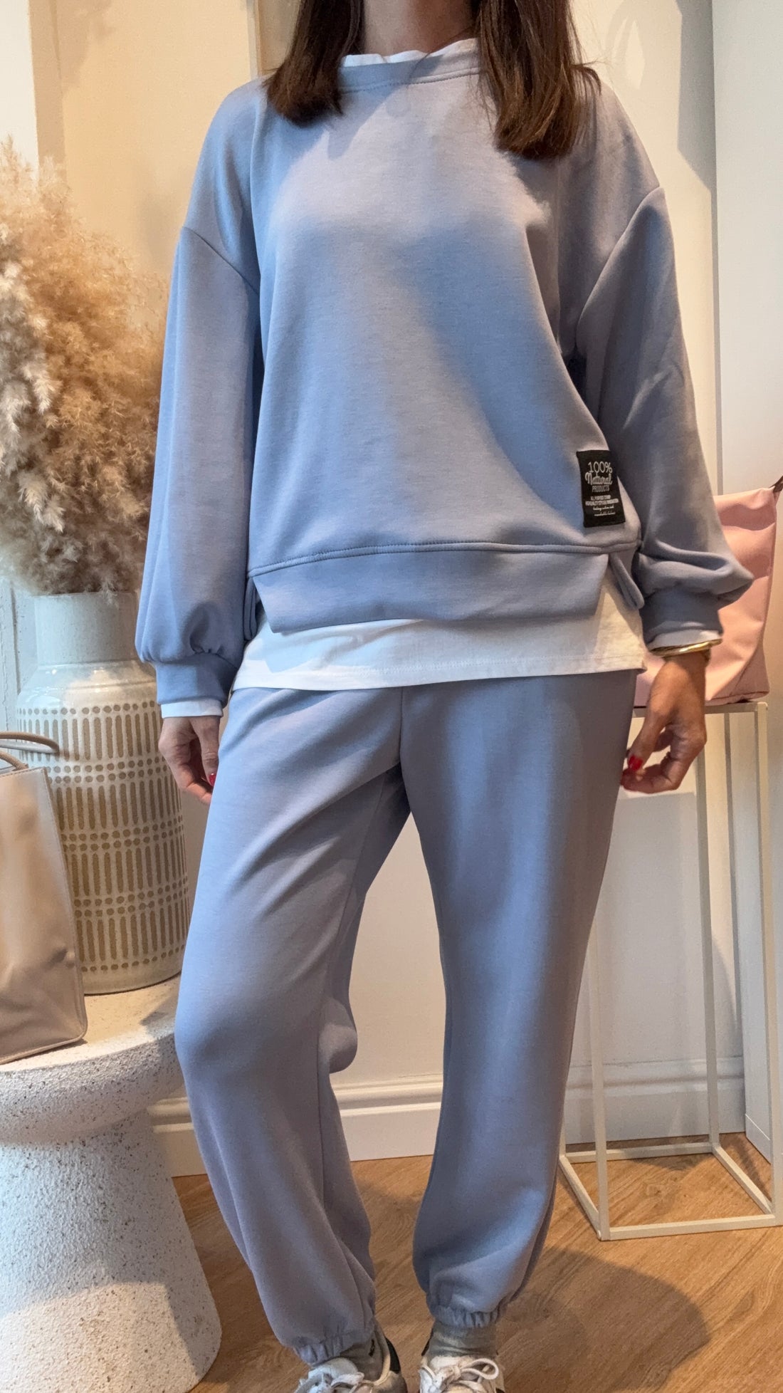 Coordinato taglia unica con vestibilità over dai tagli asimmetrici Punto Roma leggero 65% cotone 30%...