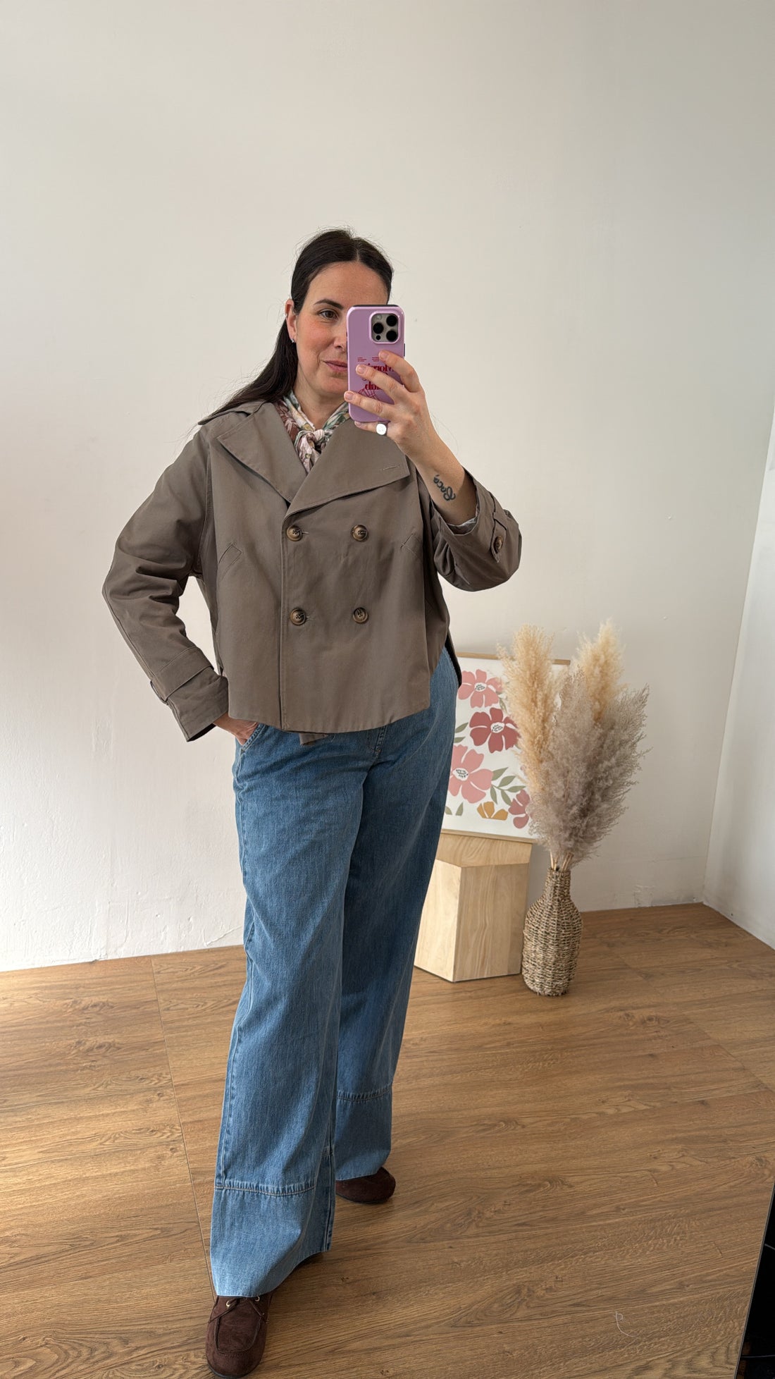 Tailleur taglia unica composto da blazer asimmetrico e pantalone taglia unica a zampa con elastico...