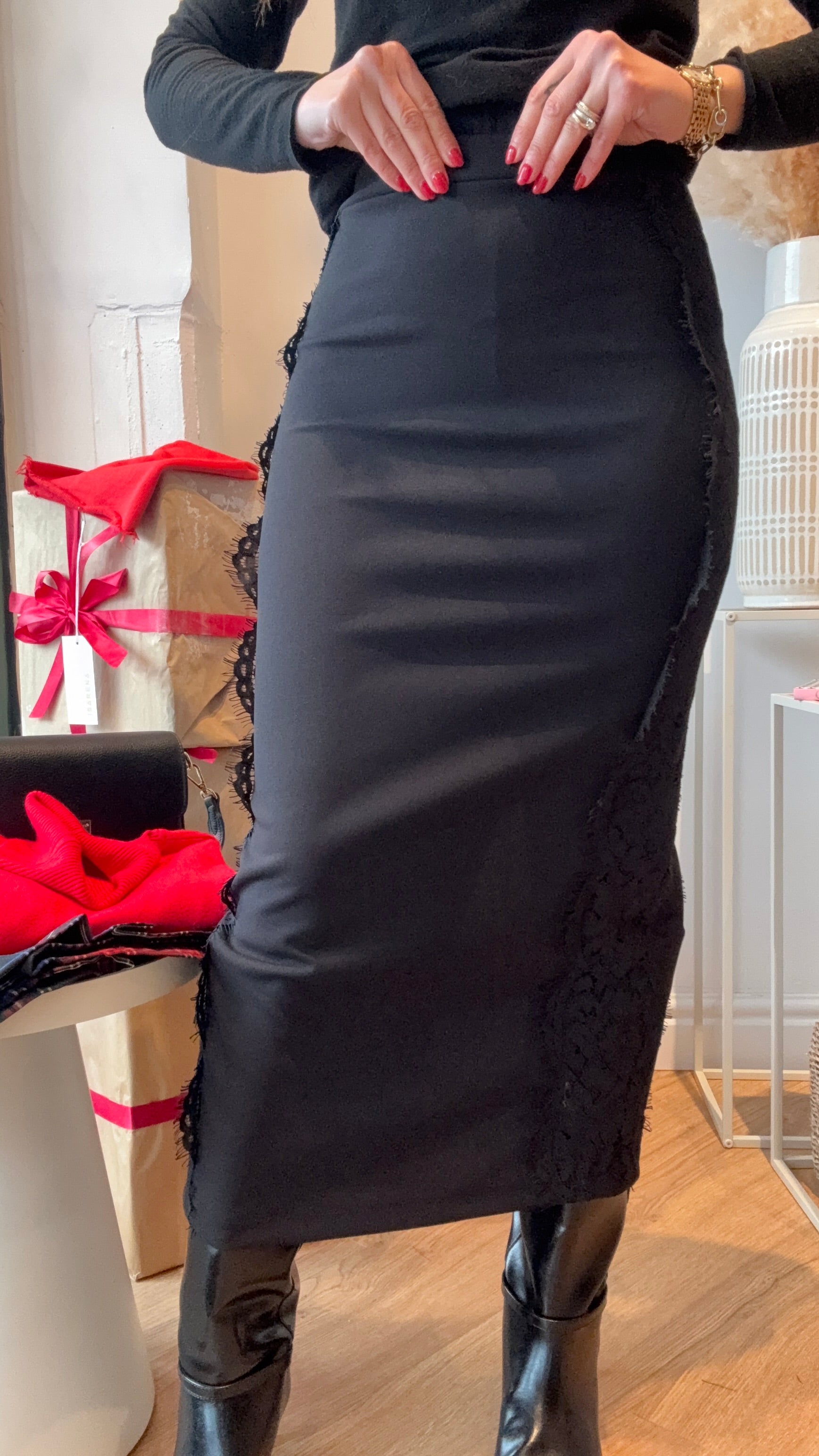 Gonna tubino con applicazione laterale in pizzo
