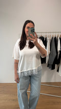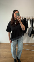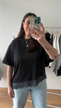 Tshirt assimetrica con inserto in pizzo