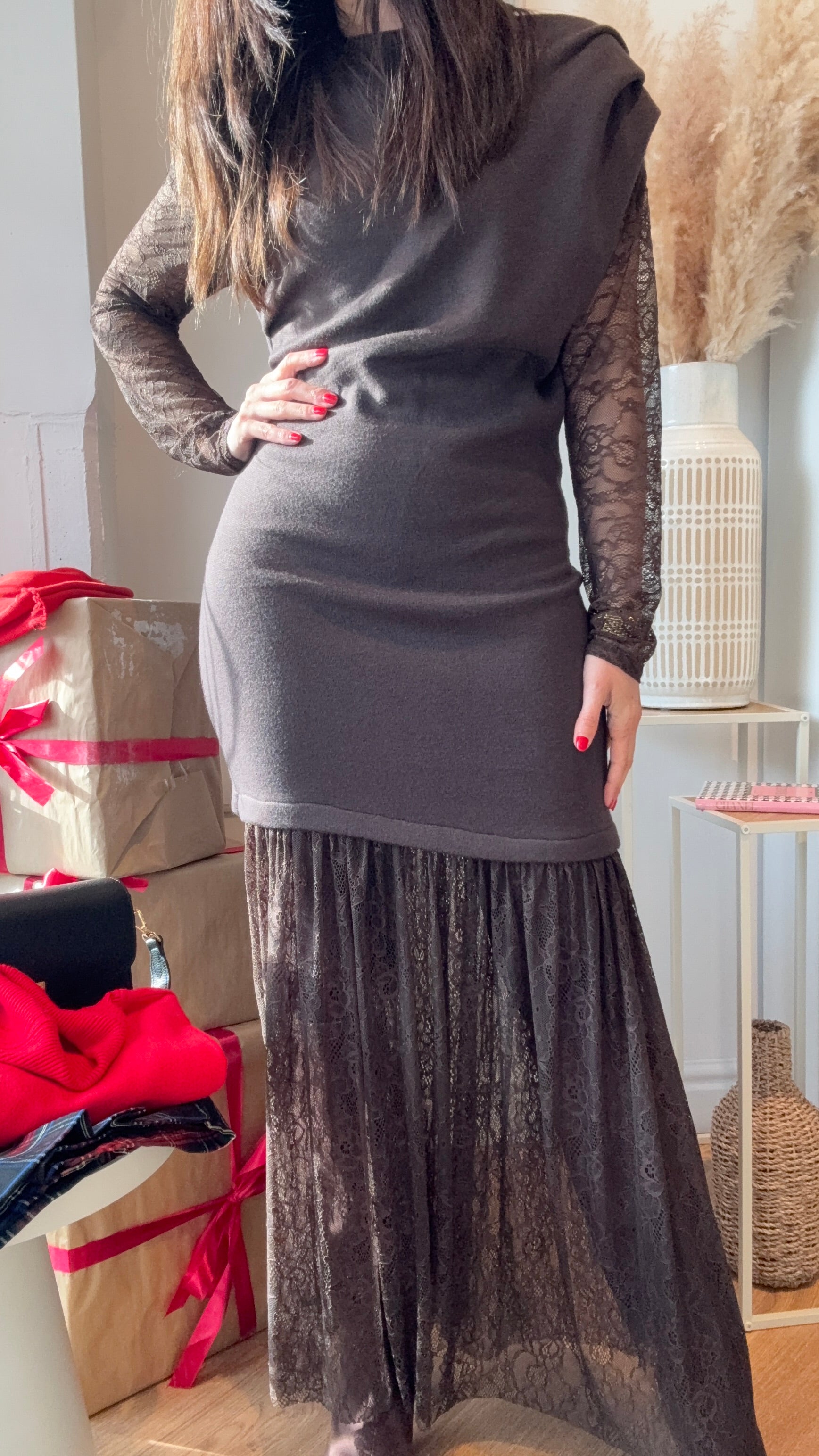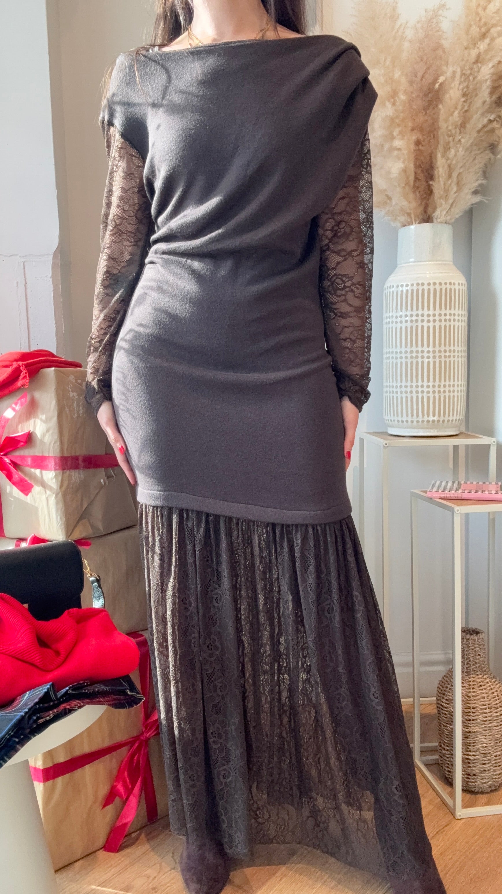 Abito taglia unica morbido al tatto con dettagli in pizzo veste fino ad una taglia 48