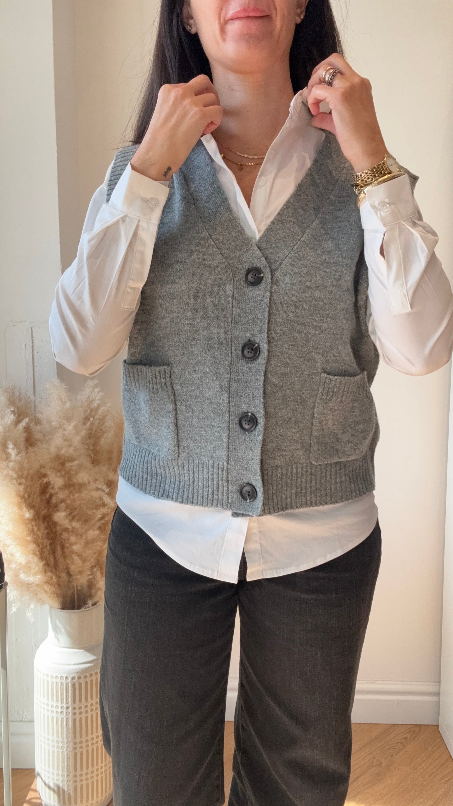 cardigan  a taglie senza manica con taglio dritto e due taschine applicate sul davanti