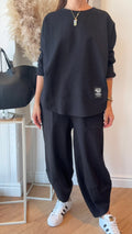 Coordinato taglia unica con vestibilità over dai tagli asimmetrici