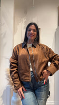 Giacca in taglia unica con zip , possibilità di stringerla sul fondo , colletto in ecopelle