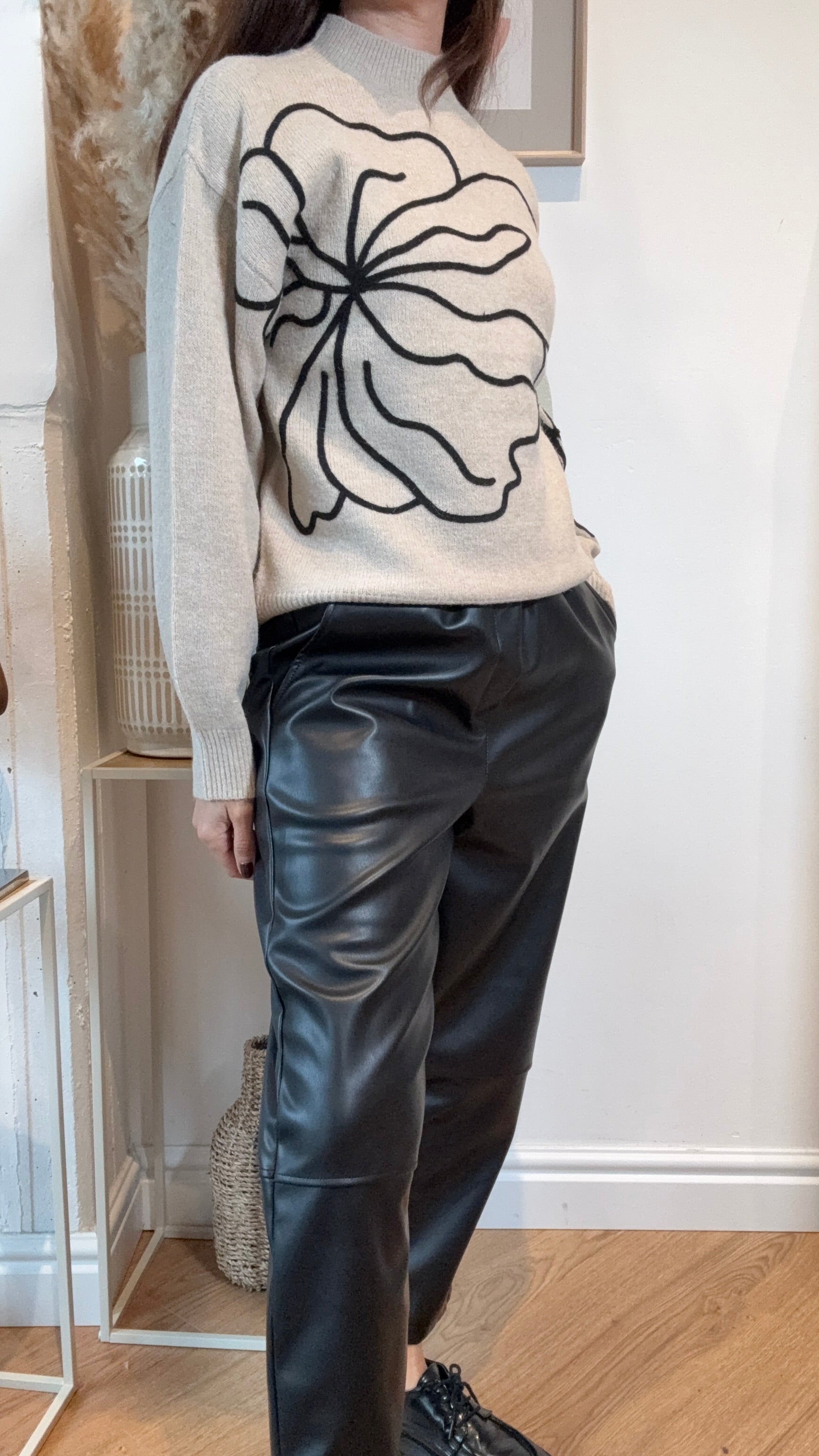 Pantalone taglia unica con elastico in vita, effetto eco pelle 100% poliestere