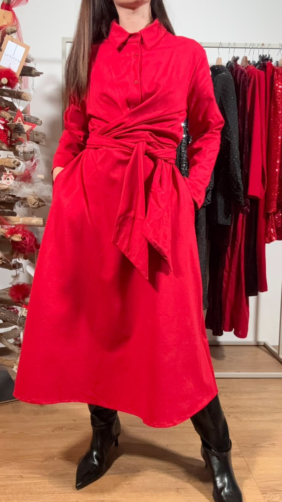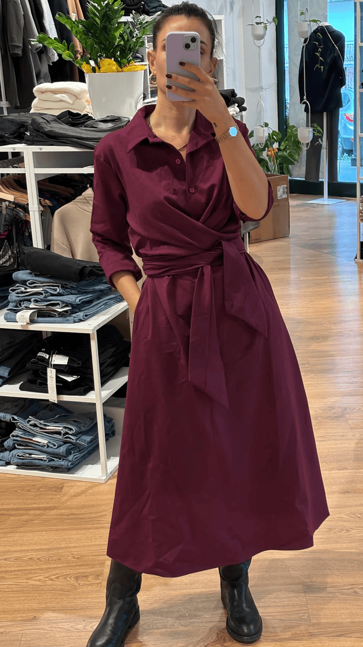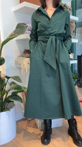 Maxi Abito Taglia Unica con fasce cucite regolabili, si puó allacciare sul davanti o anche sul dietro in base alle preferenze, ha dei bottoni nella parte alta dell’abito e il colletto, le tasche laterali a scomparsa