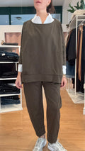 Cord-set Taglia Unica composto da maglia e pantalone modello carrot ; il completo ha una  vestibilità morbida;