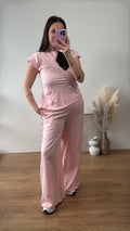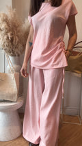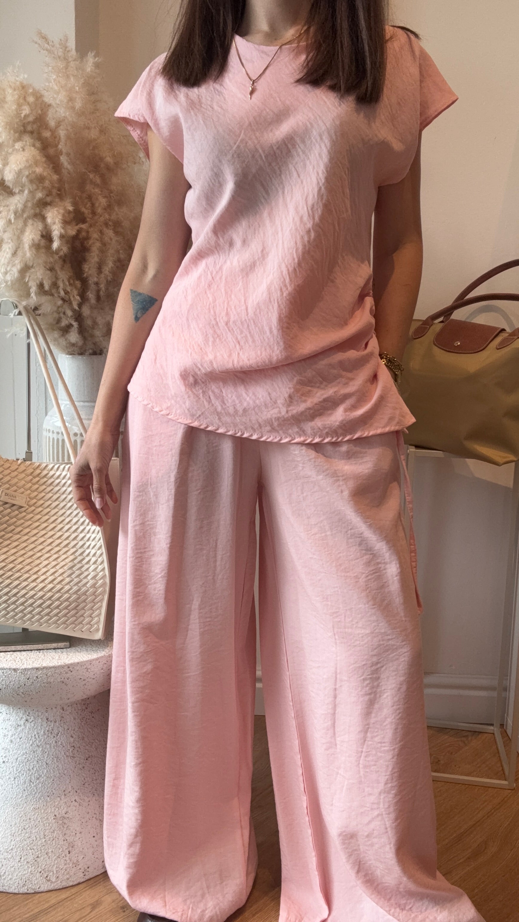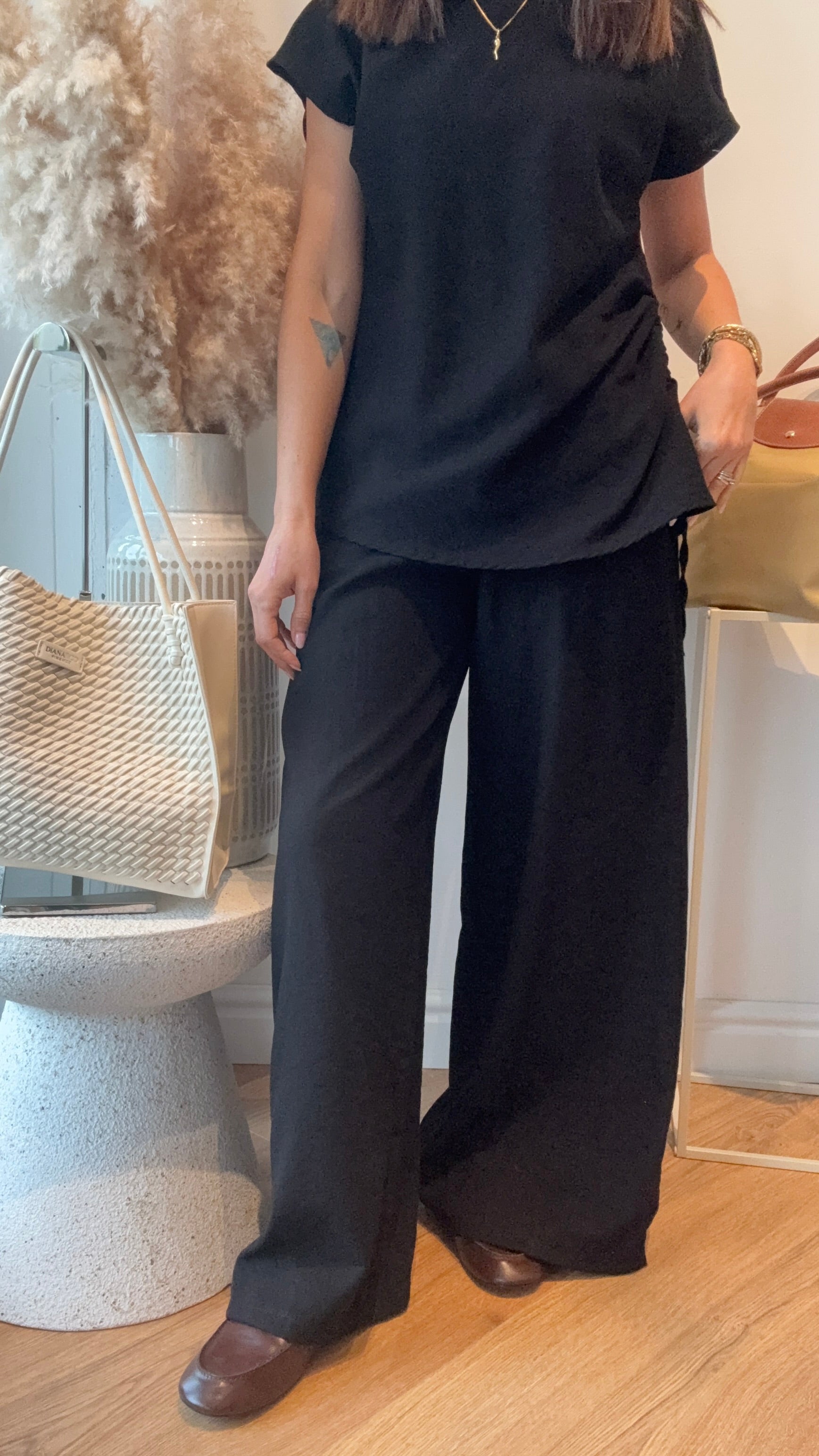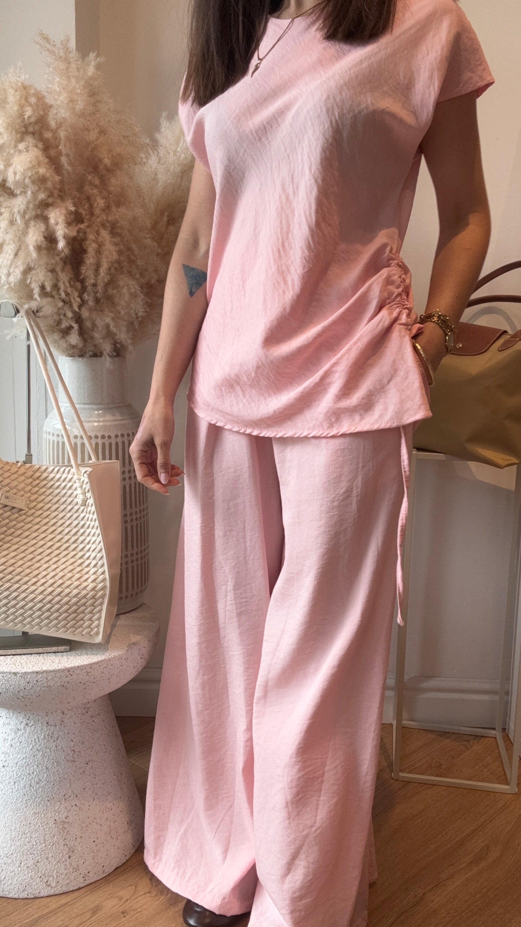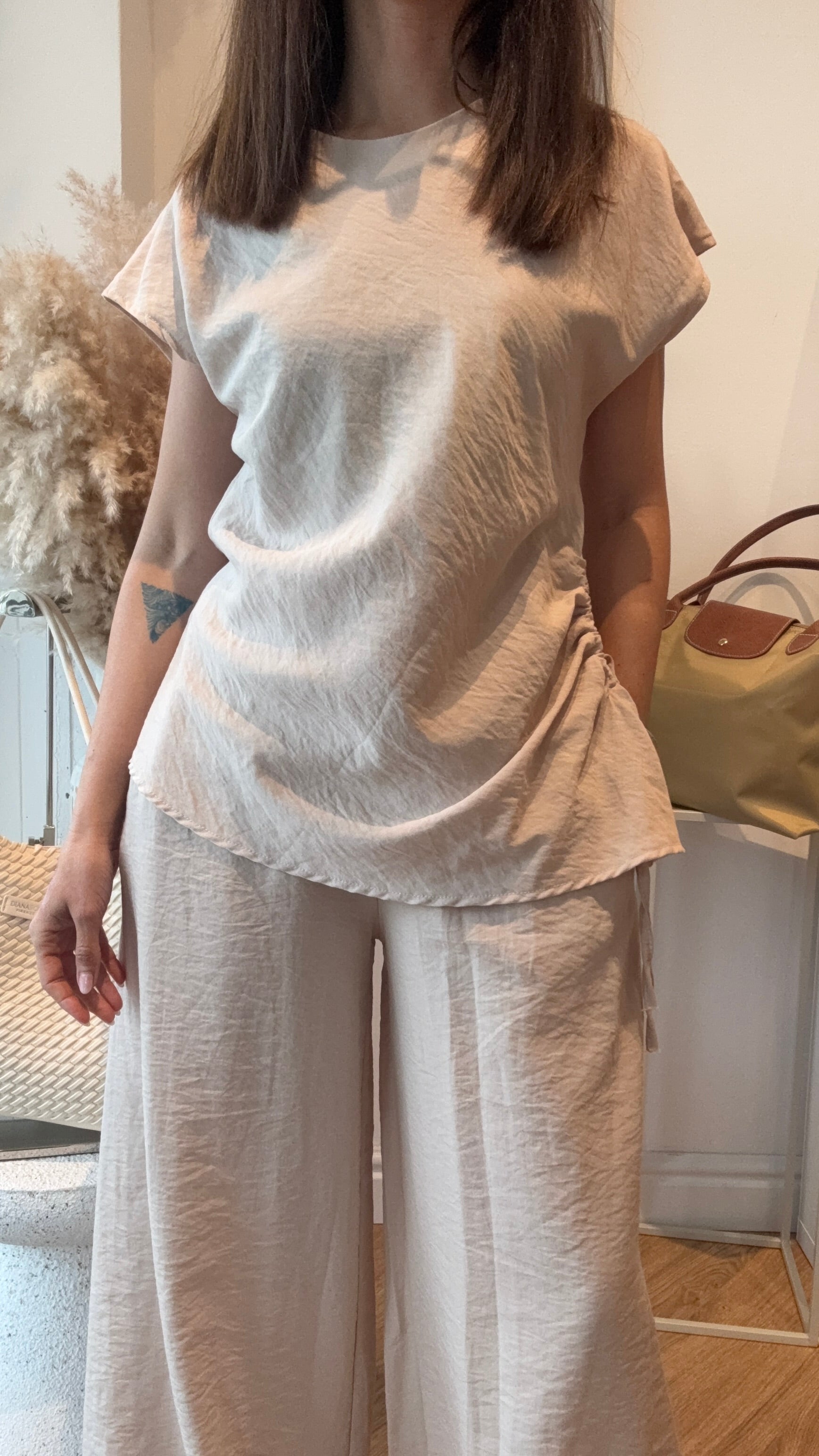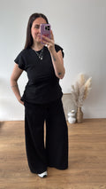 Composto da blusa con arricciatura sul fianco e pantaloni con elastico in vita e gamba Palazzo