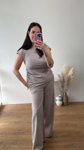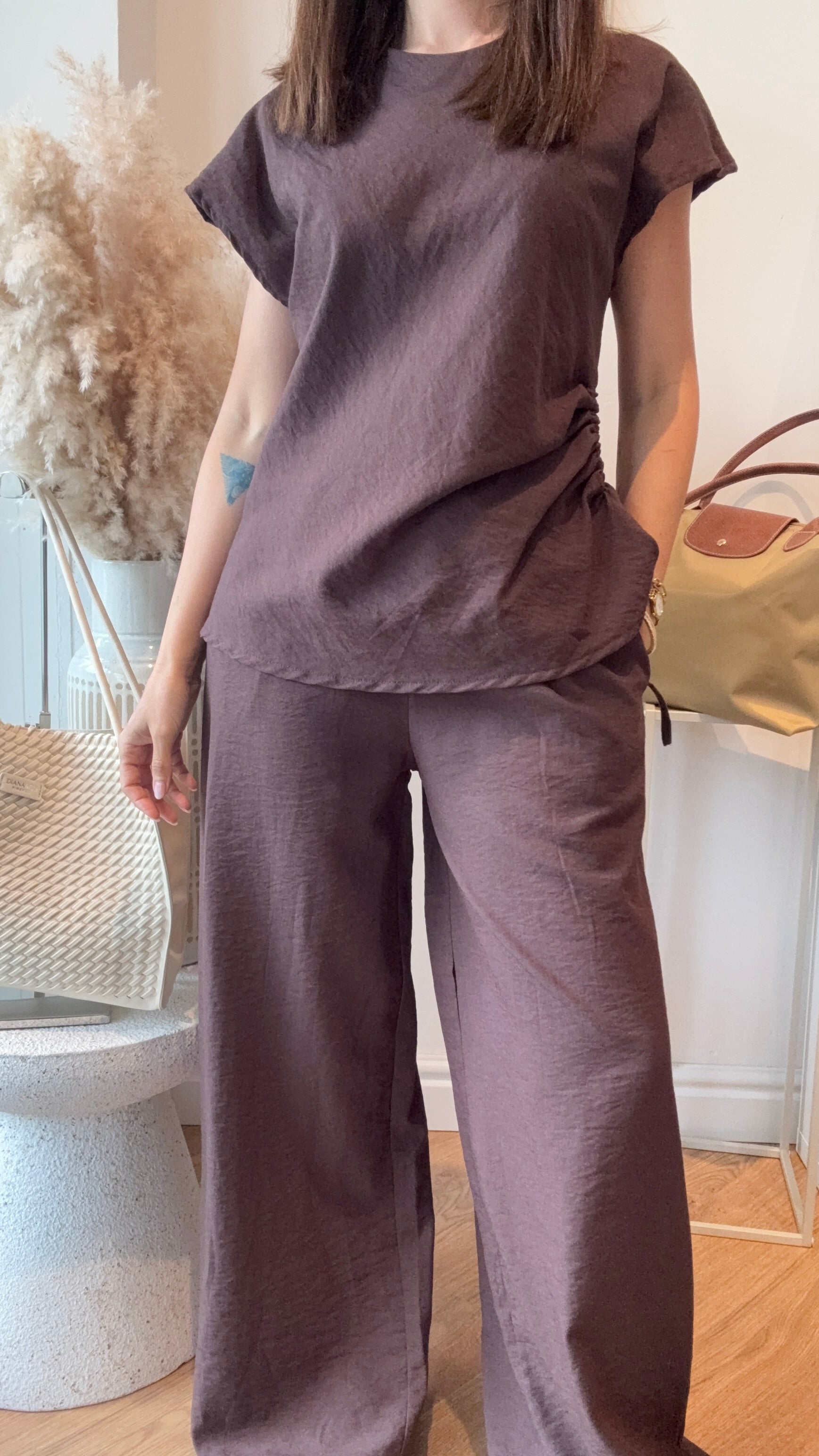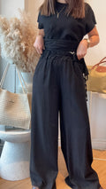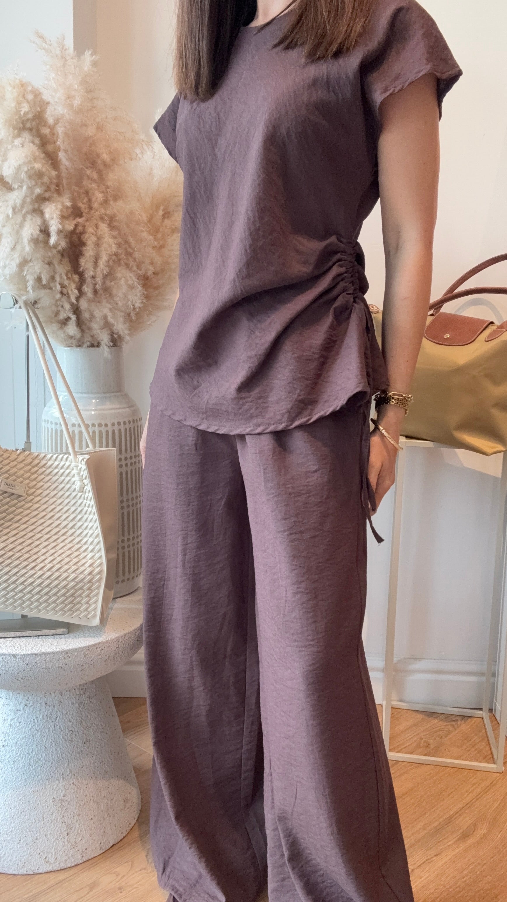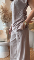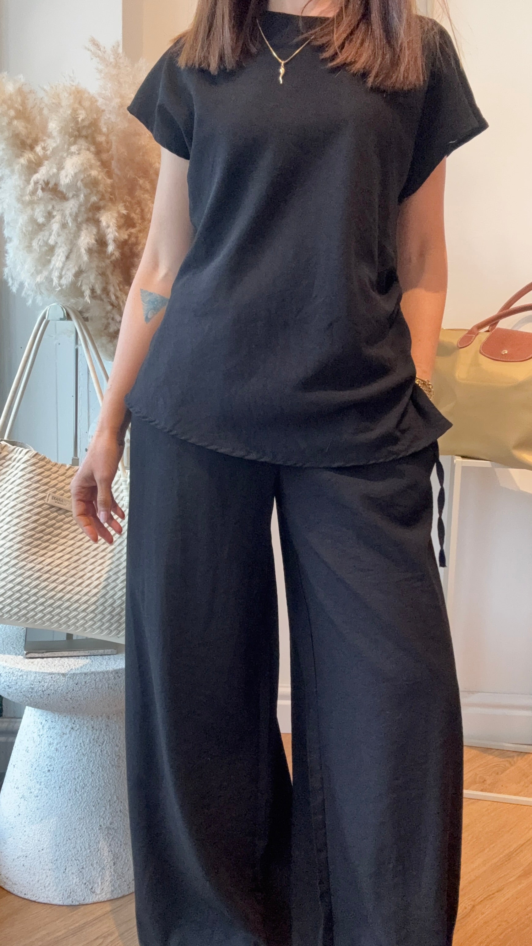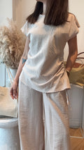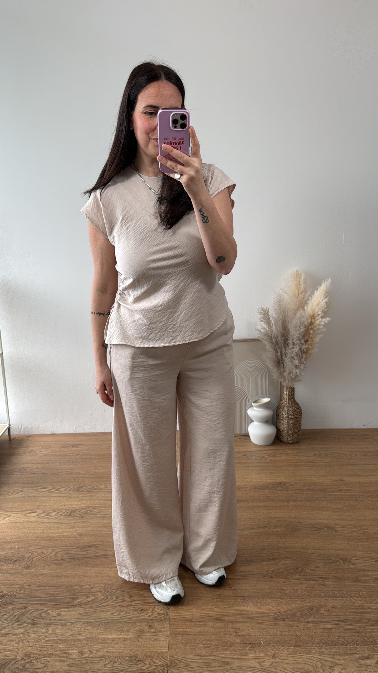 Composto da blusa con arricciatura sul fianco e pantaloni con elastico in vita e gamba Palazzo
