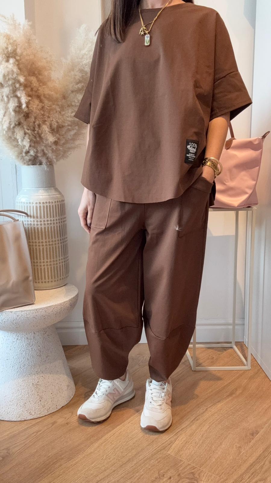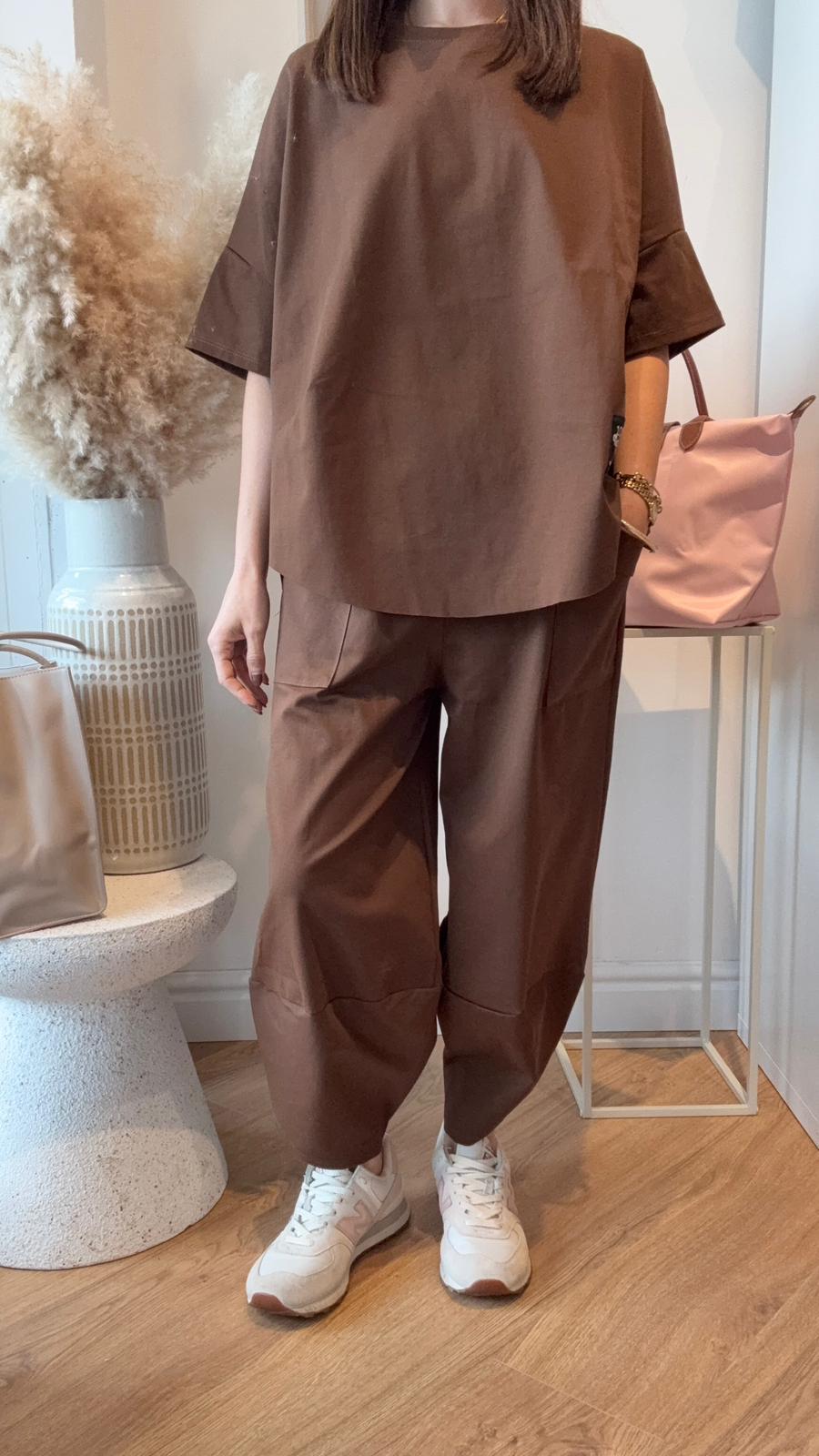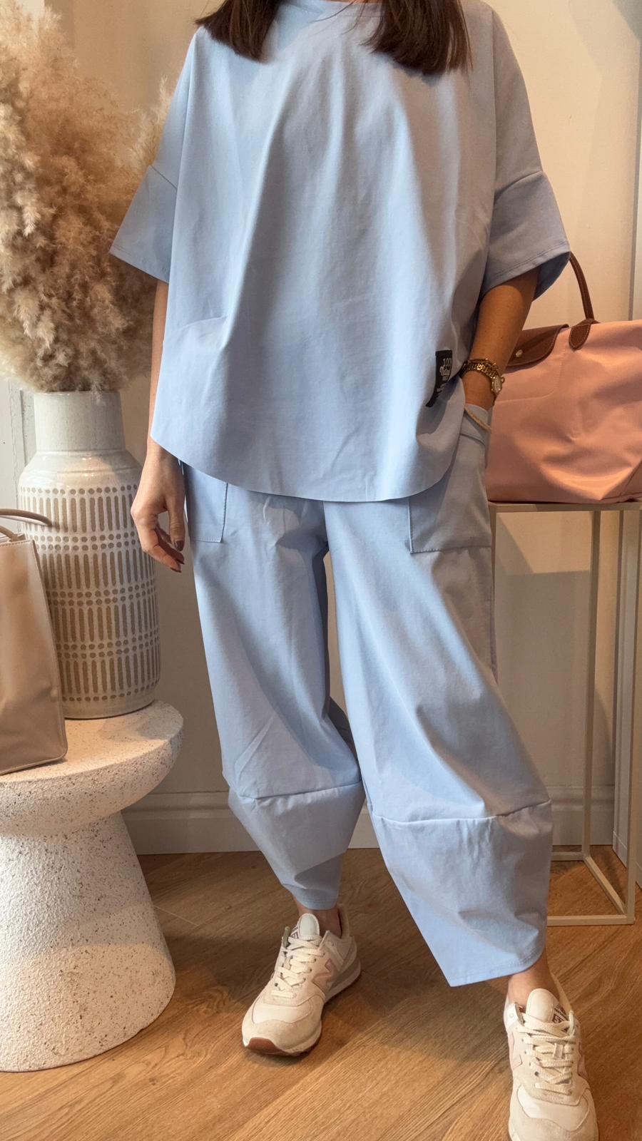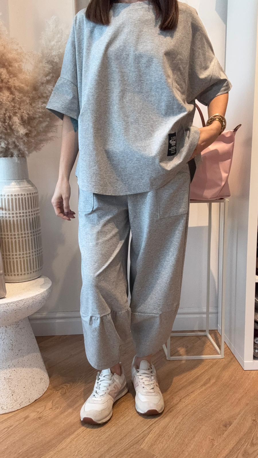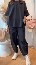 coordinato taglia unica con vestibilità over dai tagli asimmetrici