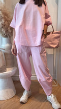 Il pantalone con elastico in vita e tasche applicate, lunghezza alla cavilglia con il fondo con chiusura a bocciolo