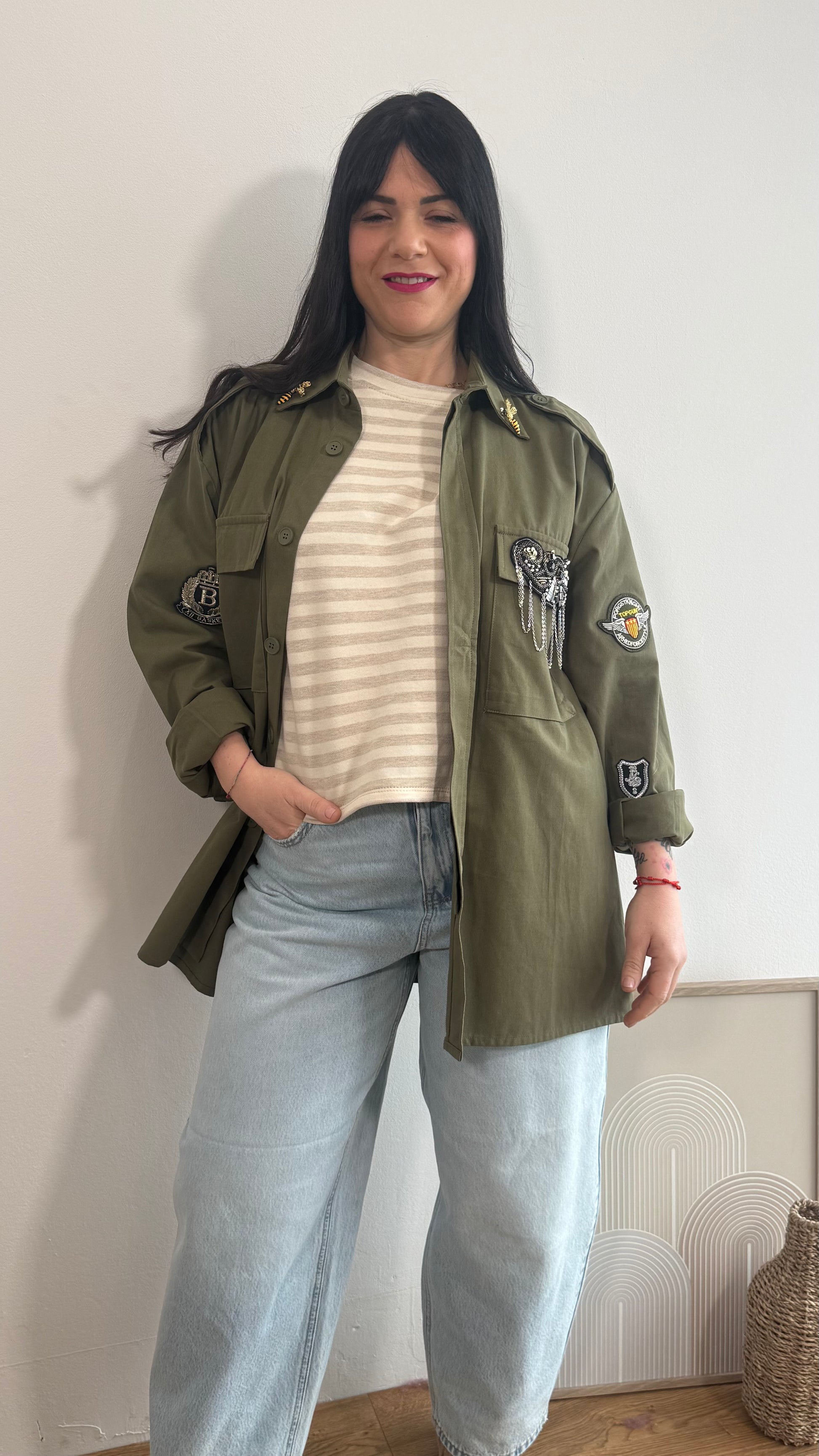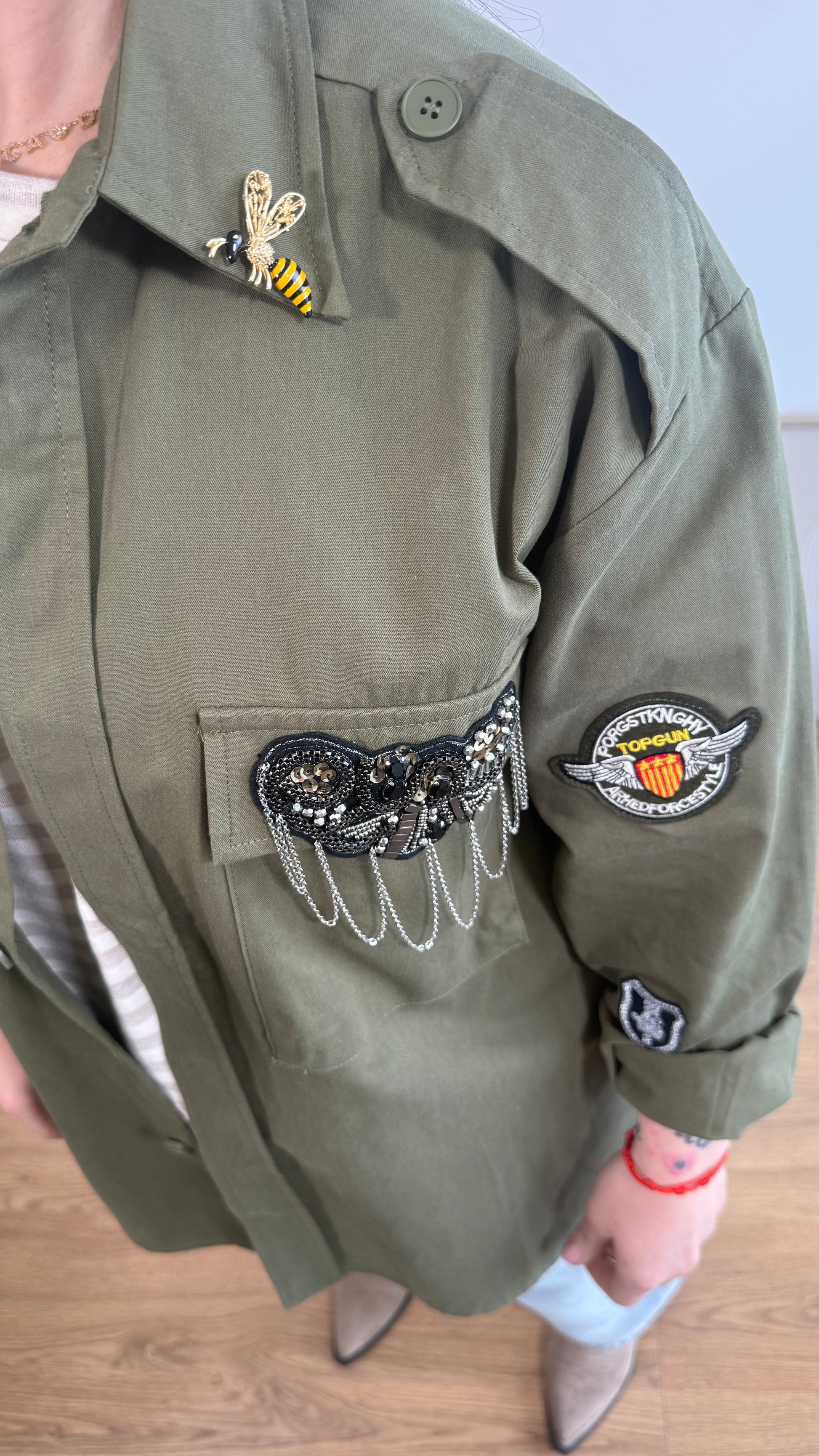 Giacca a taglie con spille e dettagli