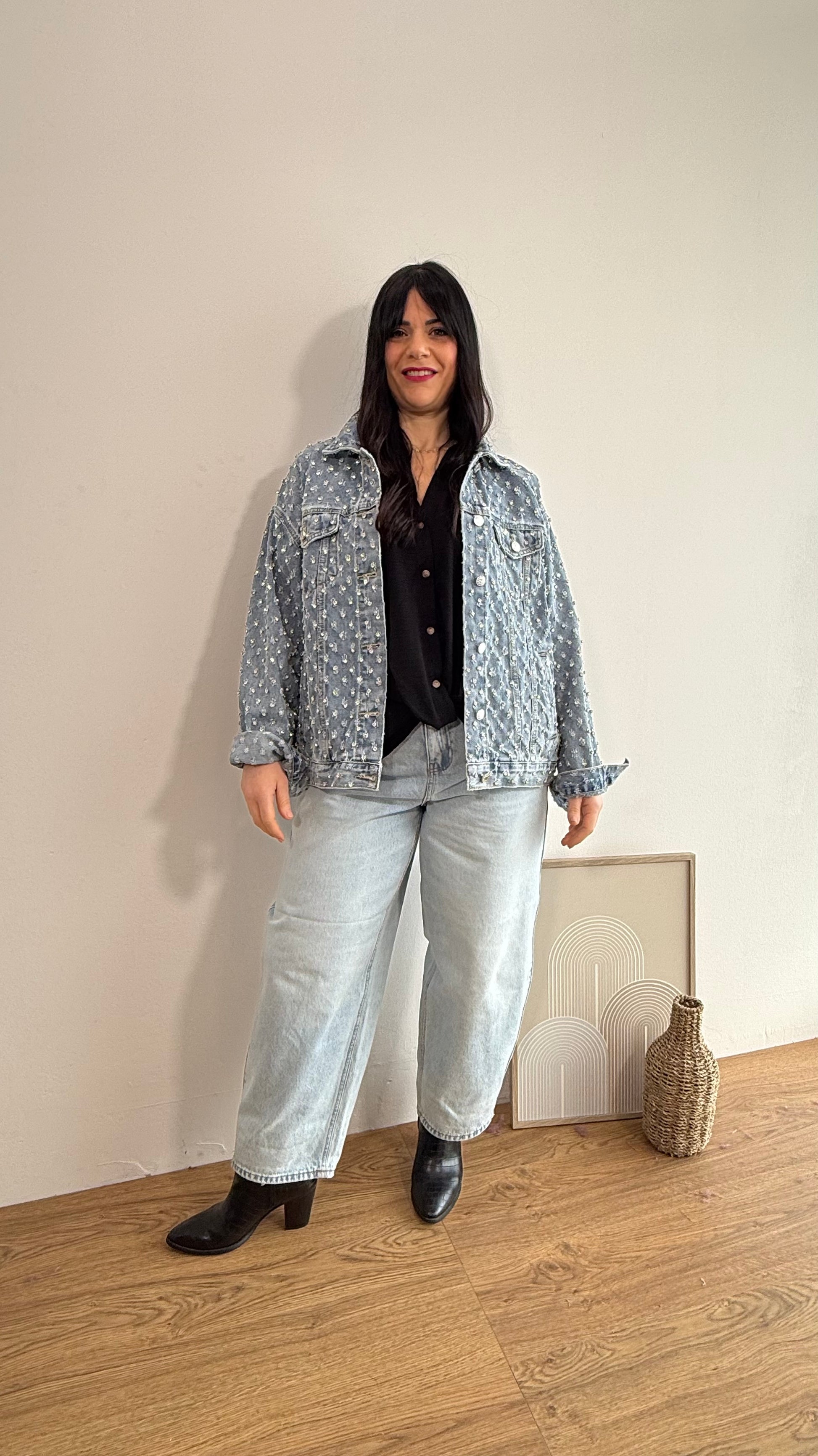 Giacca in Denim con dettagli in strass borchiati