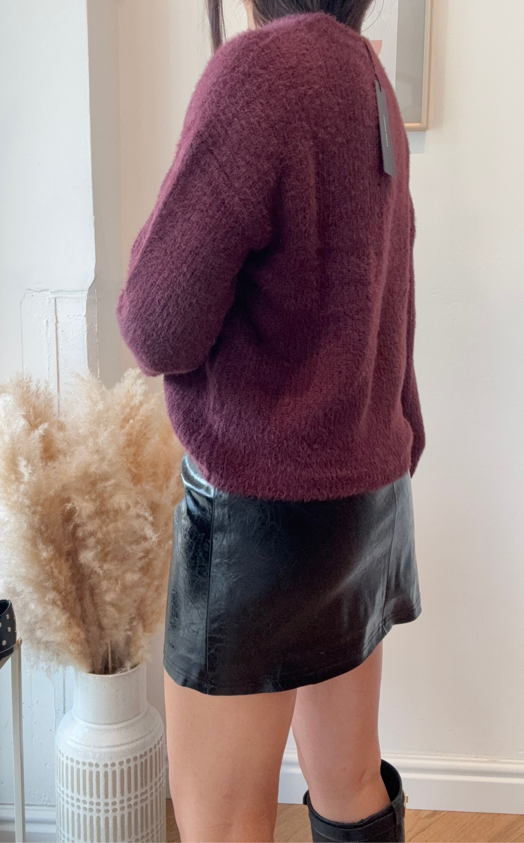 Mini a taglie effetto ecopelle tagliata a vivo sul fondo con cerniera laterale