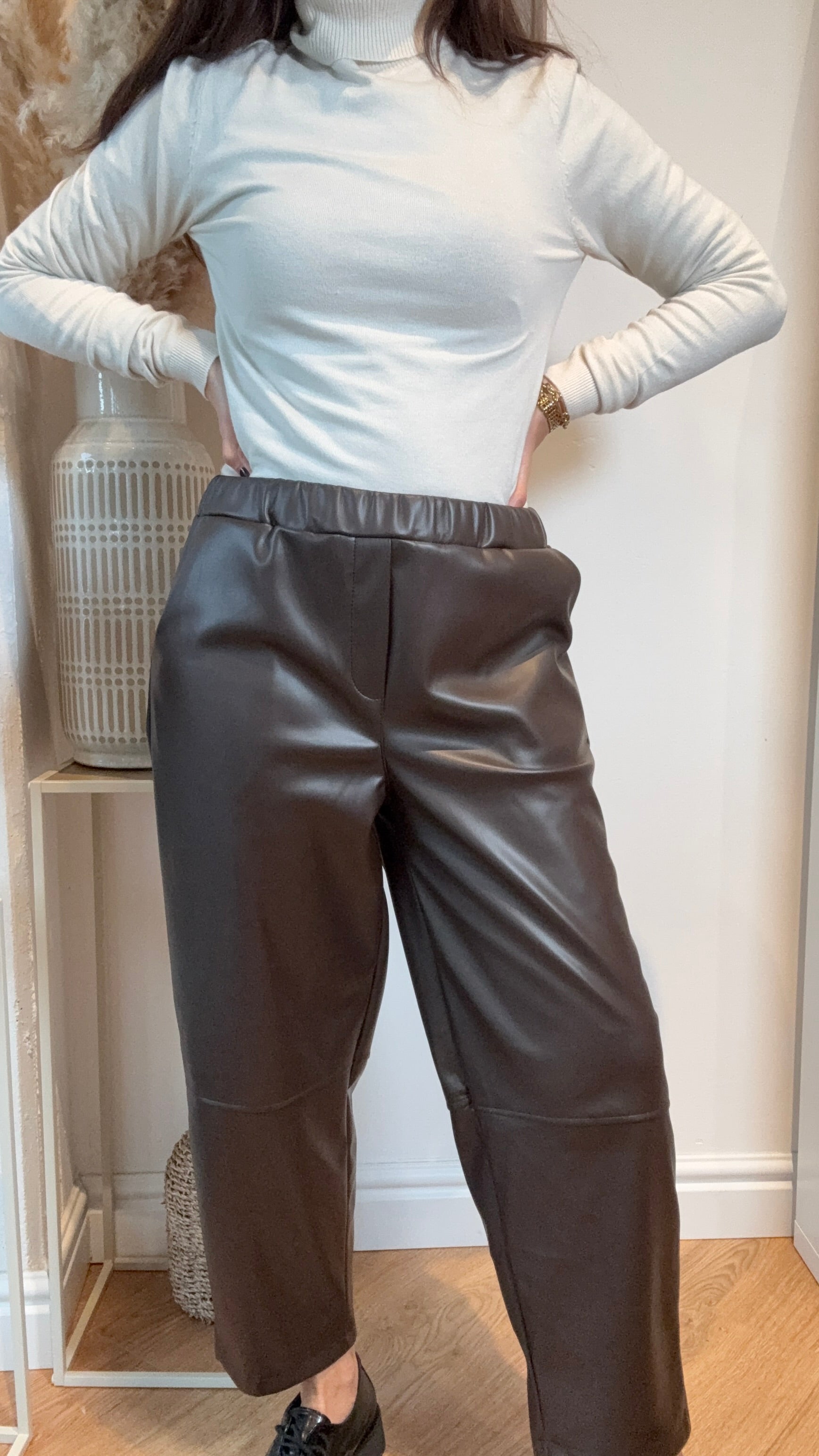 Pantalone taglia unica con elastico in vita, effetto eco pelle 100% poliestere