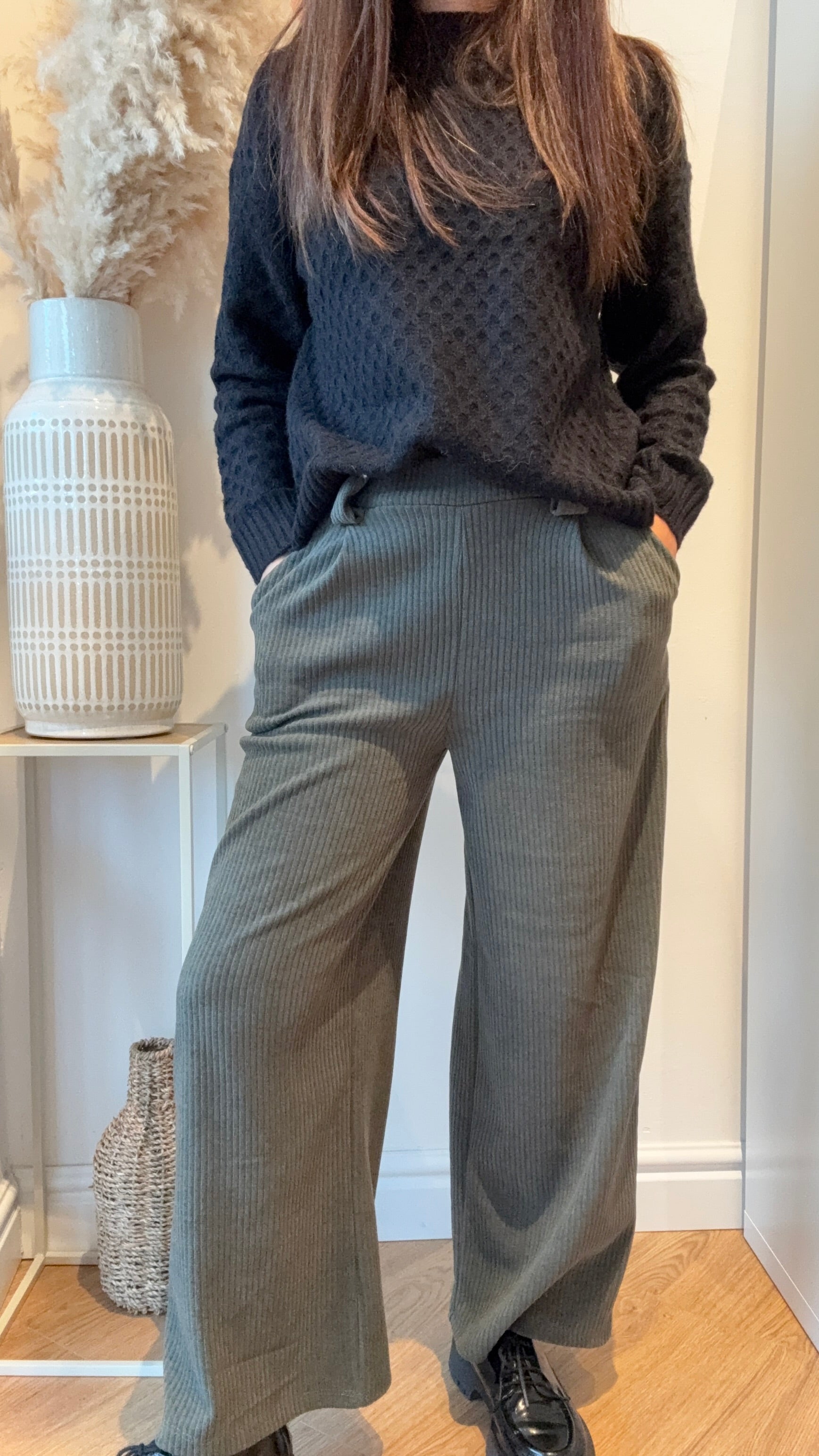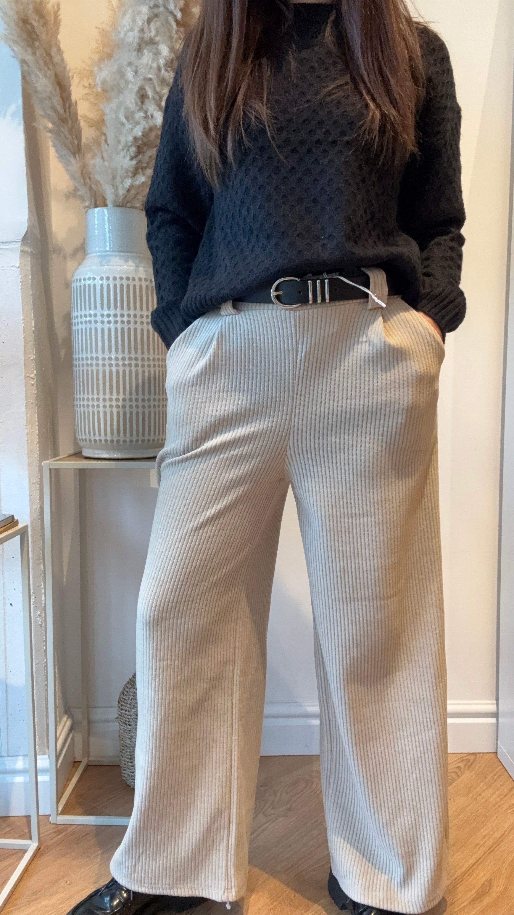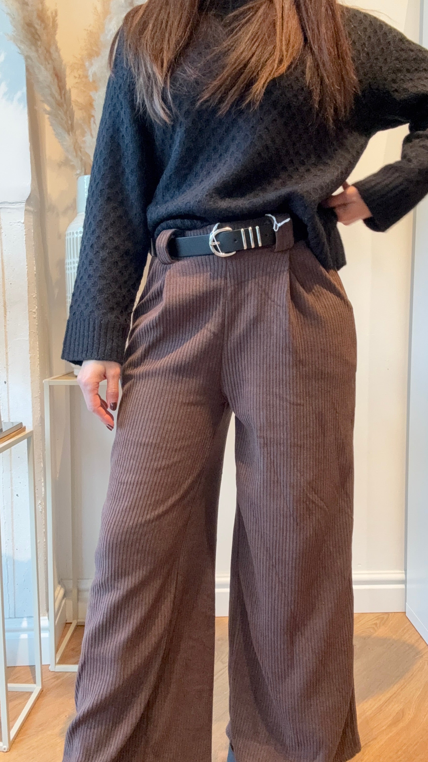 Pantalone taglia unica in velluto alla caviglia con passati per cintura