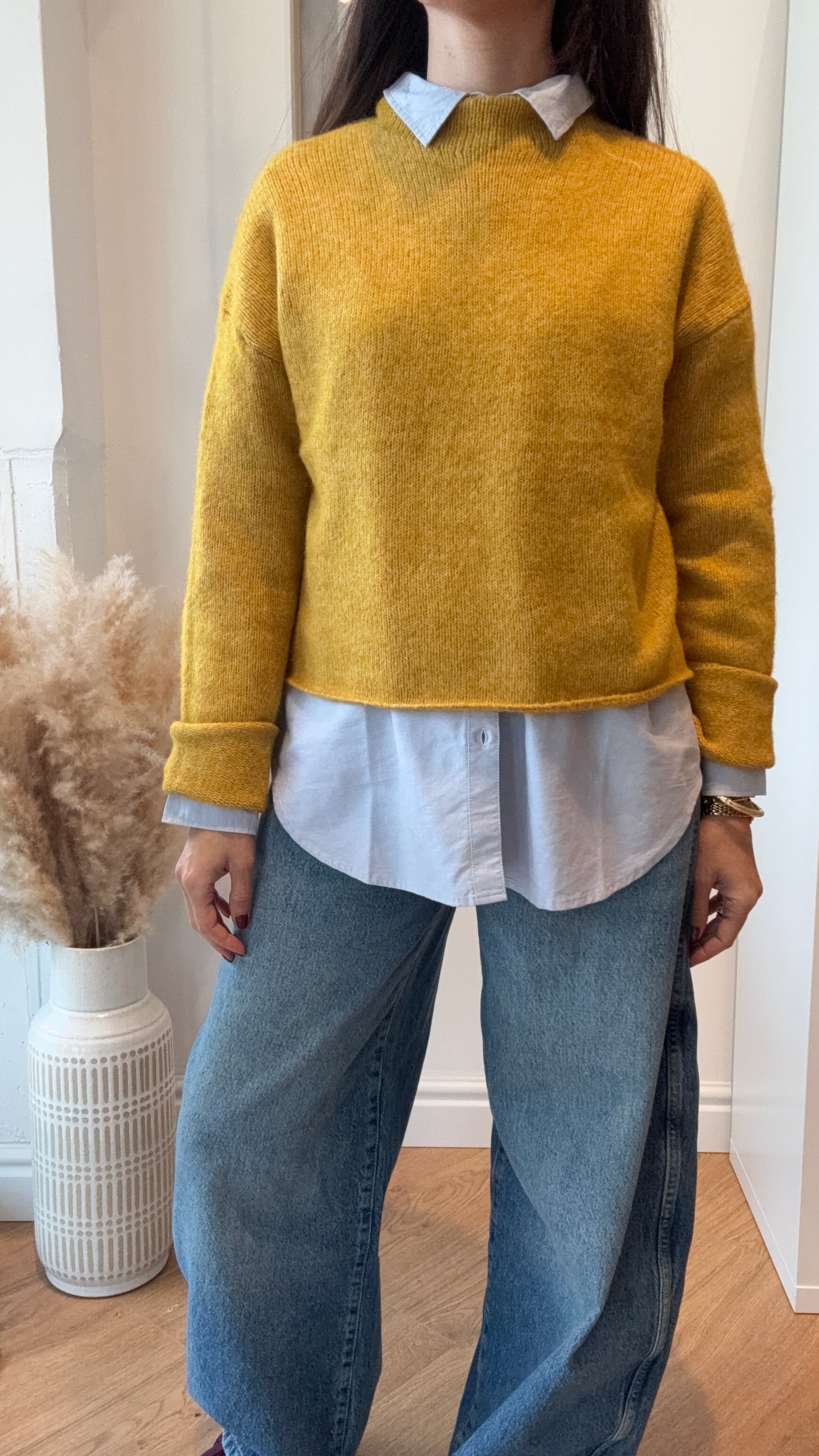 Maglione a lupetto con spalla scesa con taglio scatola