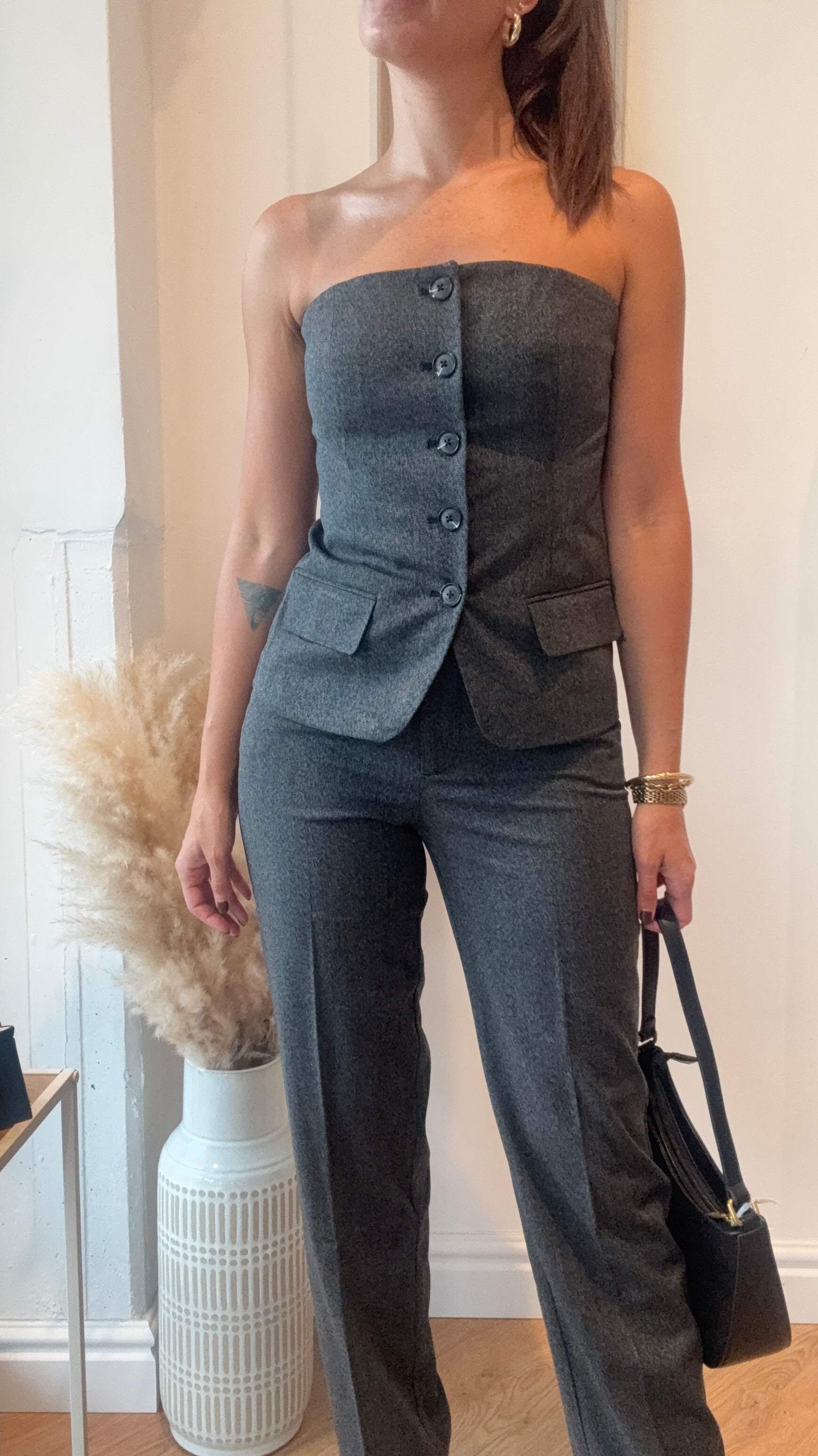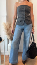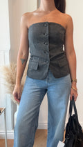 Top senza spalline con abbottonatura sul davanti e tasche con patta applicata