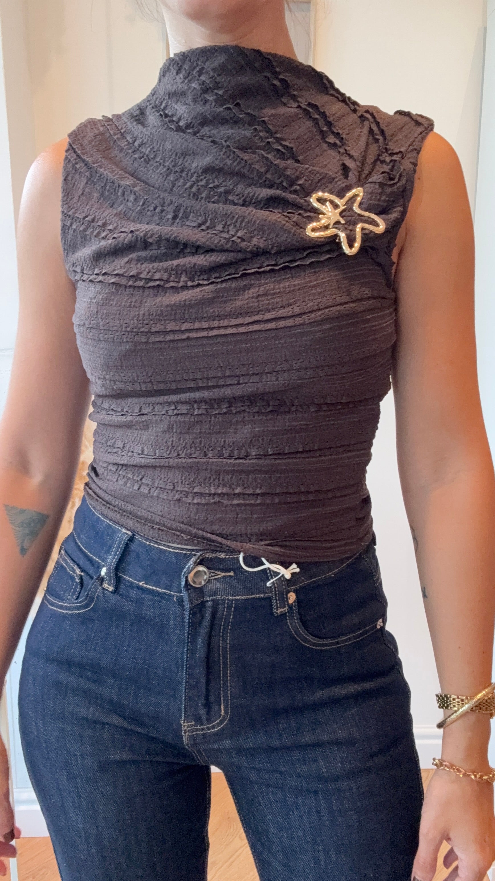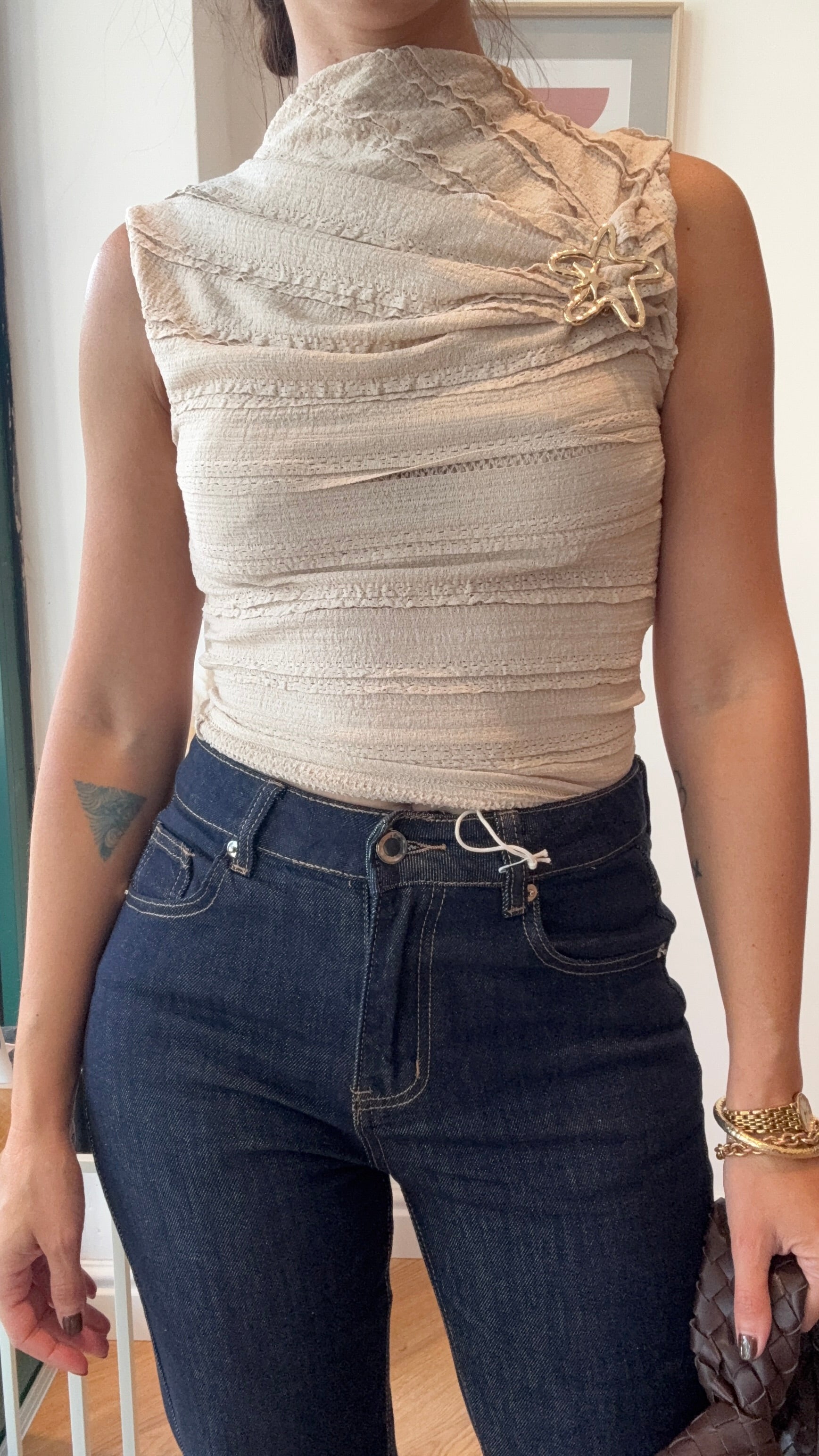 Top in taglia unica con dettaglio in oro